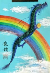 守護龍の郷で展示されている龍アート作品の一部。絵画や立体作品など、多様な表現で龍の力を感じることができます。