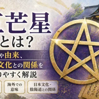 日本の神社と信仰 五芒星とは?意味や由来、日本文化との関係をわかりやすく解説 五芒星(ごぼうせい)とは、五つの頂点を持つ星形の図形で、古くからさまざまな文化の中で象徴的に用いられてきた図形です。一見するとシンプルな形ですが、歴史・宗教・文化の中で多様な意味を持つ図形として知られています。本記事では、五芒星の意味や由来... 2026.04.21 日本の神社と信仰